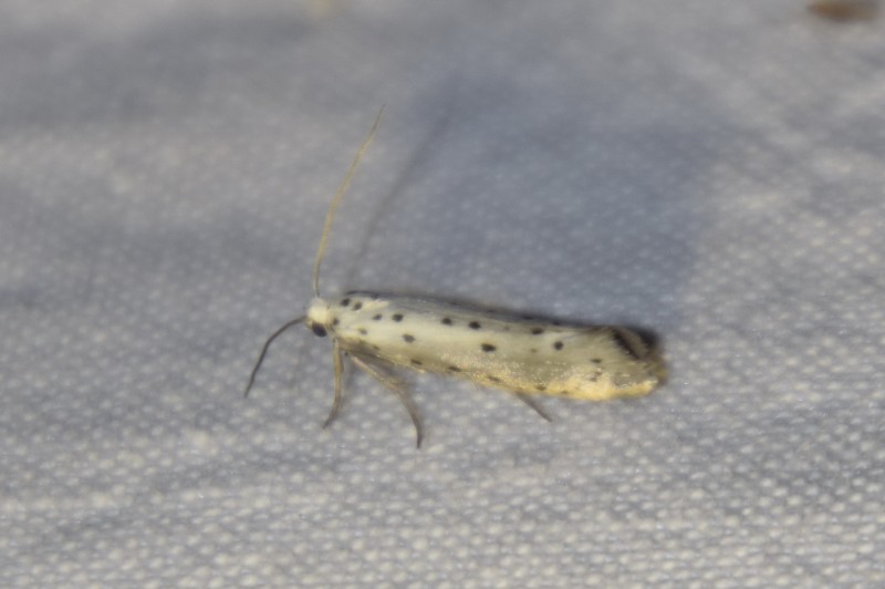 Et bien, les exemplaires tous blancs sont indéterminables. Les "un peu gris" peuvent être confondus avec Y. rorella (qui vit sur les saules) mais qui a toujours des points fins. Je vote pour padella (probable).