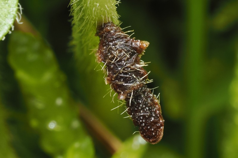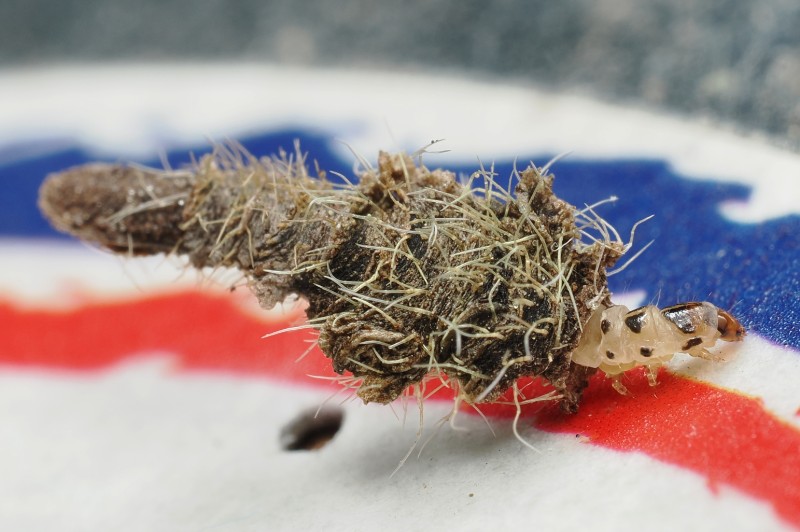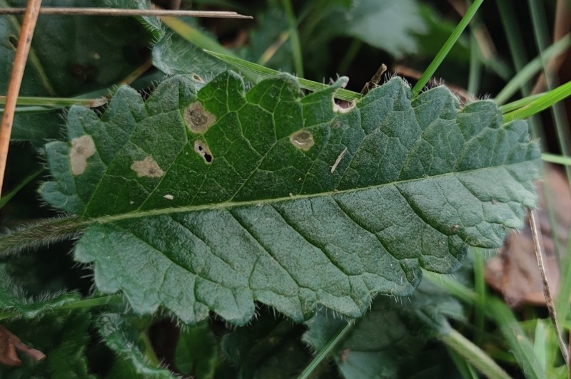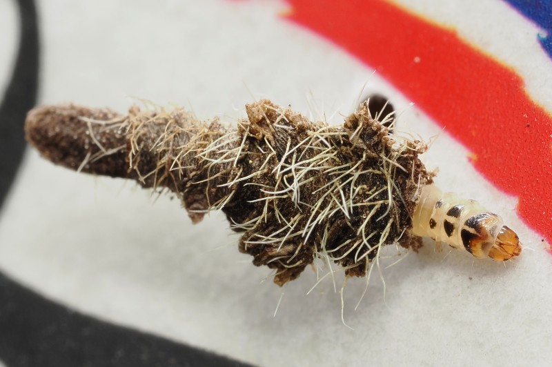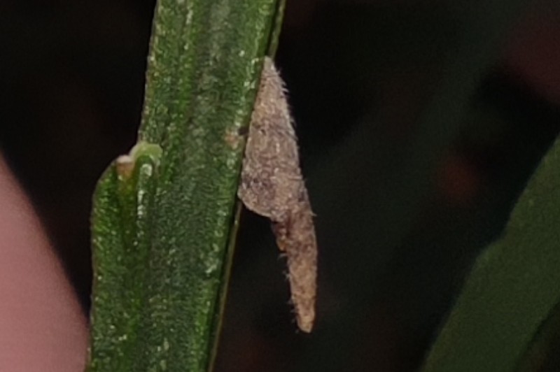 Une mine de Coleophora sur feuille tombée de Sorbus aucuparia, peut-être trigeminella... à vérifier un jour.